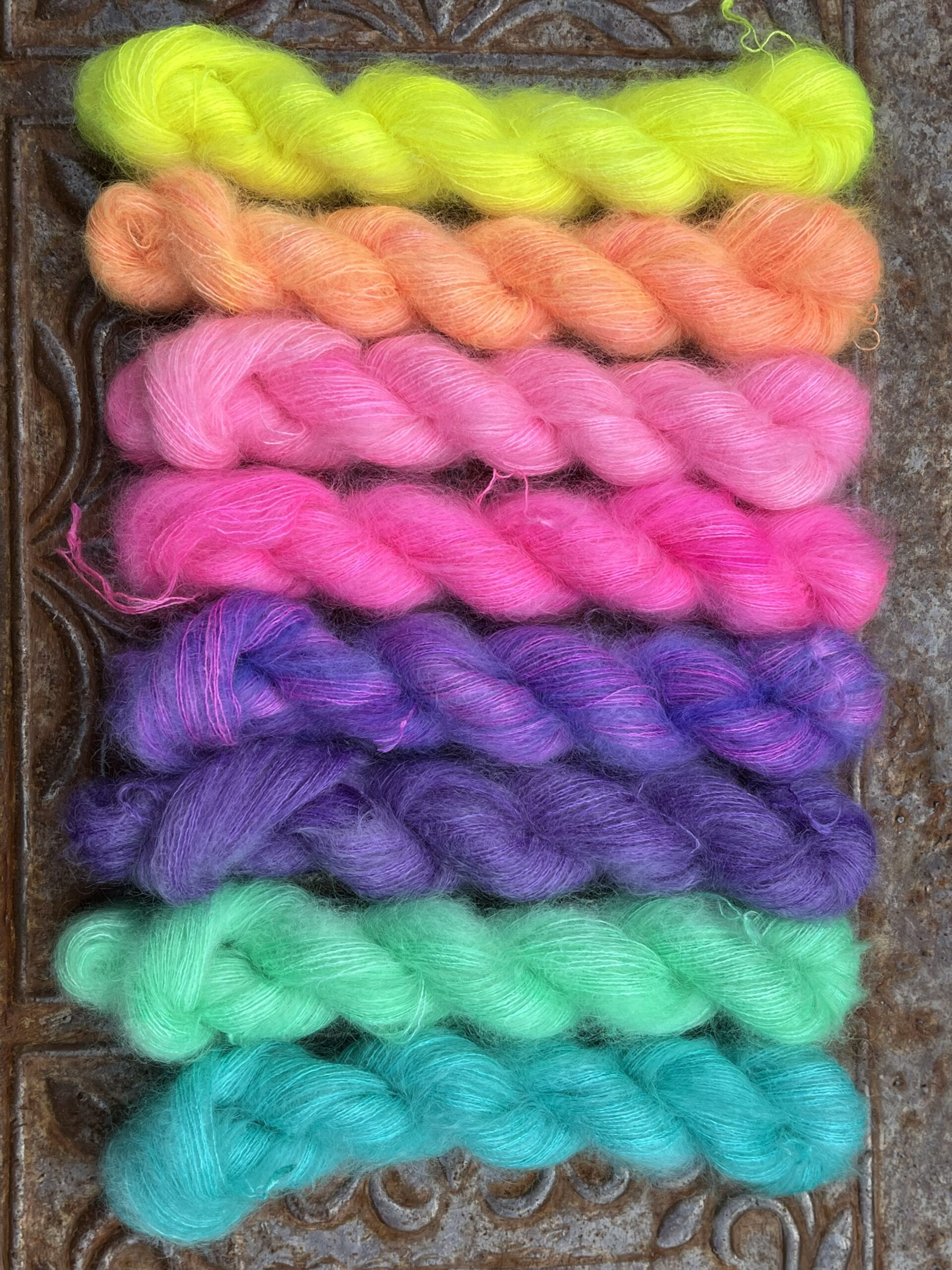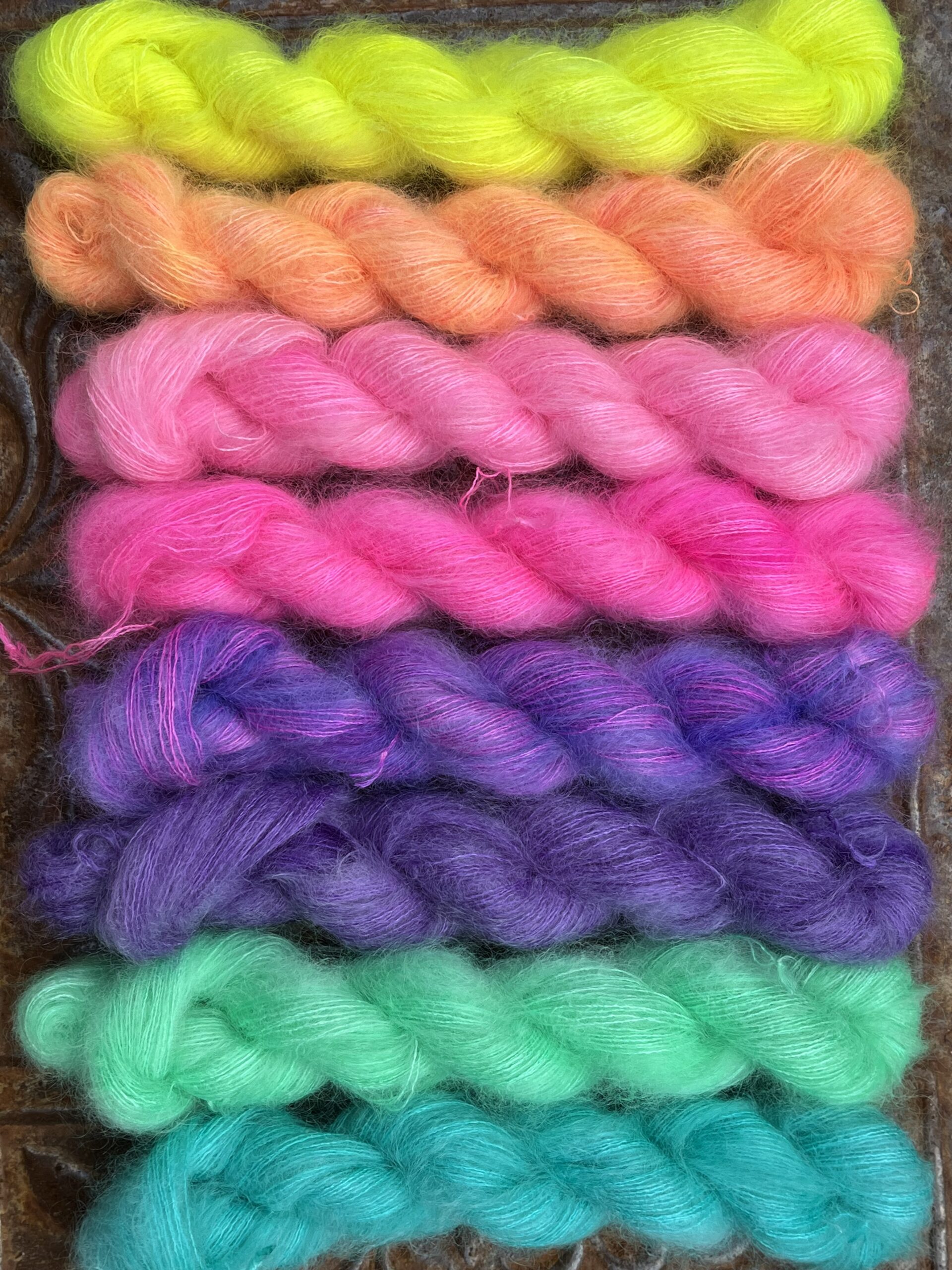 Sættet består af 8 mini-fed i forskellige farver, med hver ca. 20g/168 meter Kid Silk Lace.
