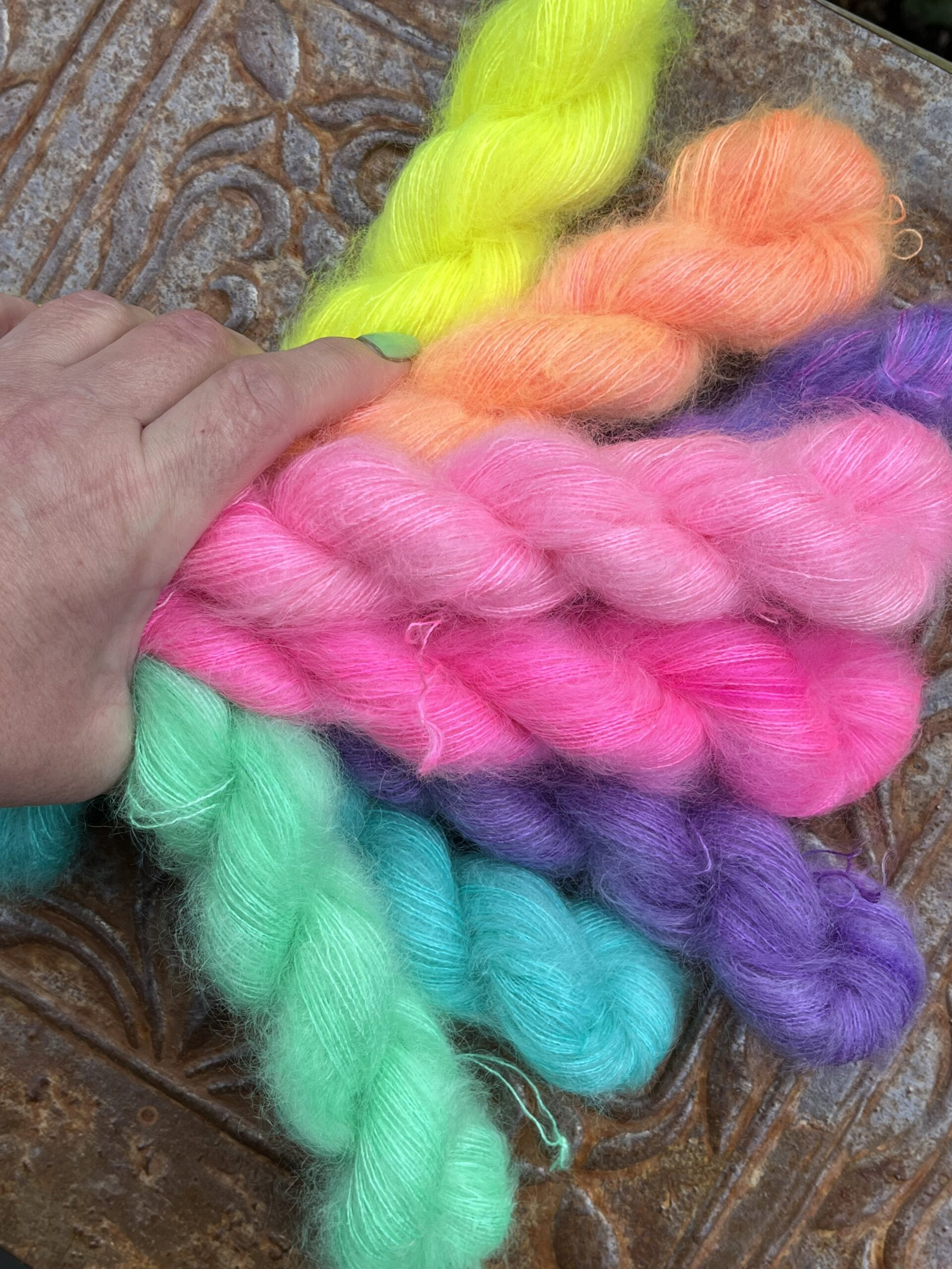 64% Kid Mohair, 36% Grade A Mulberry Silk.