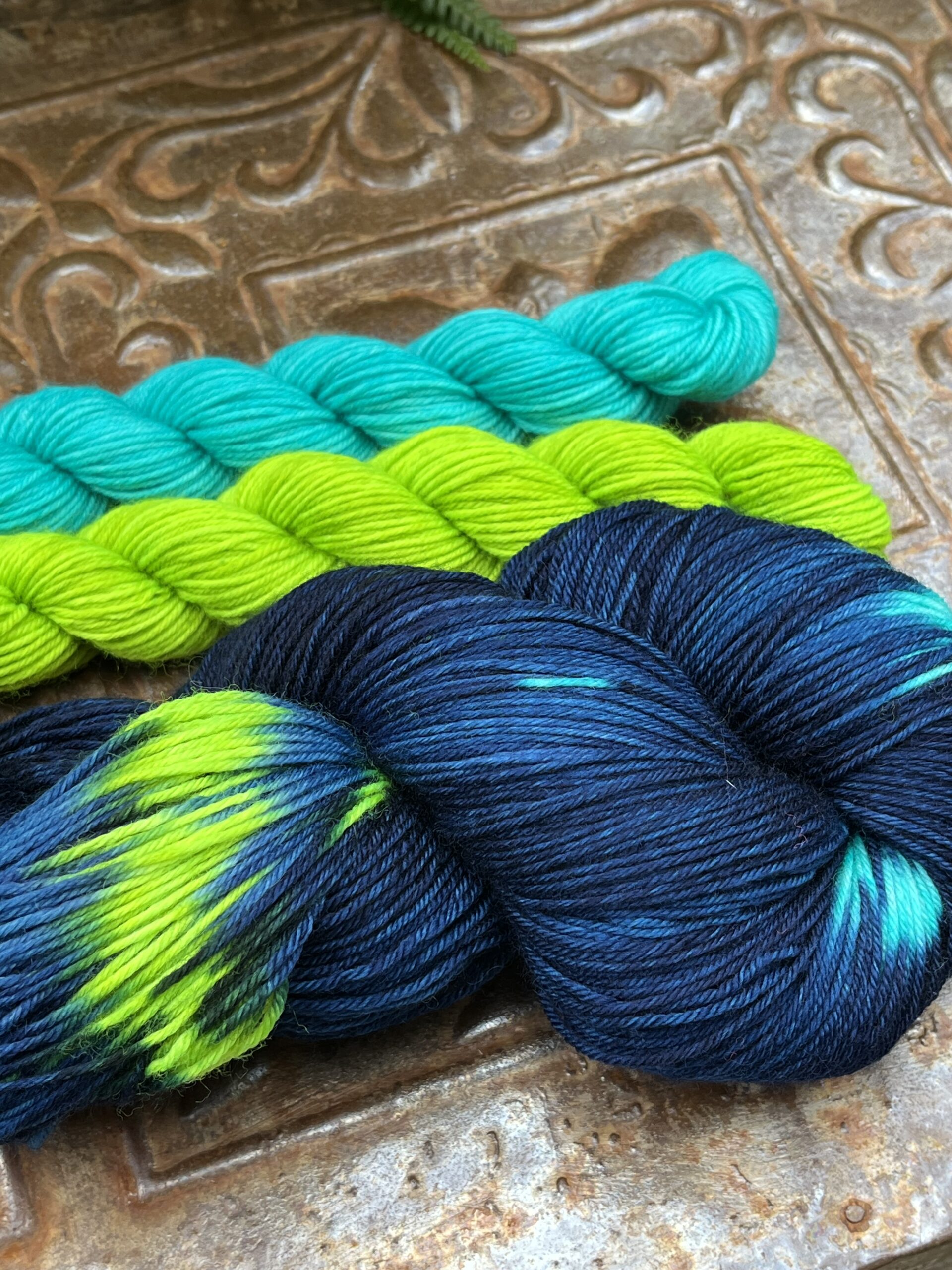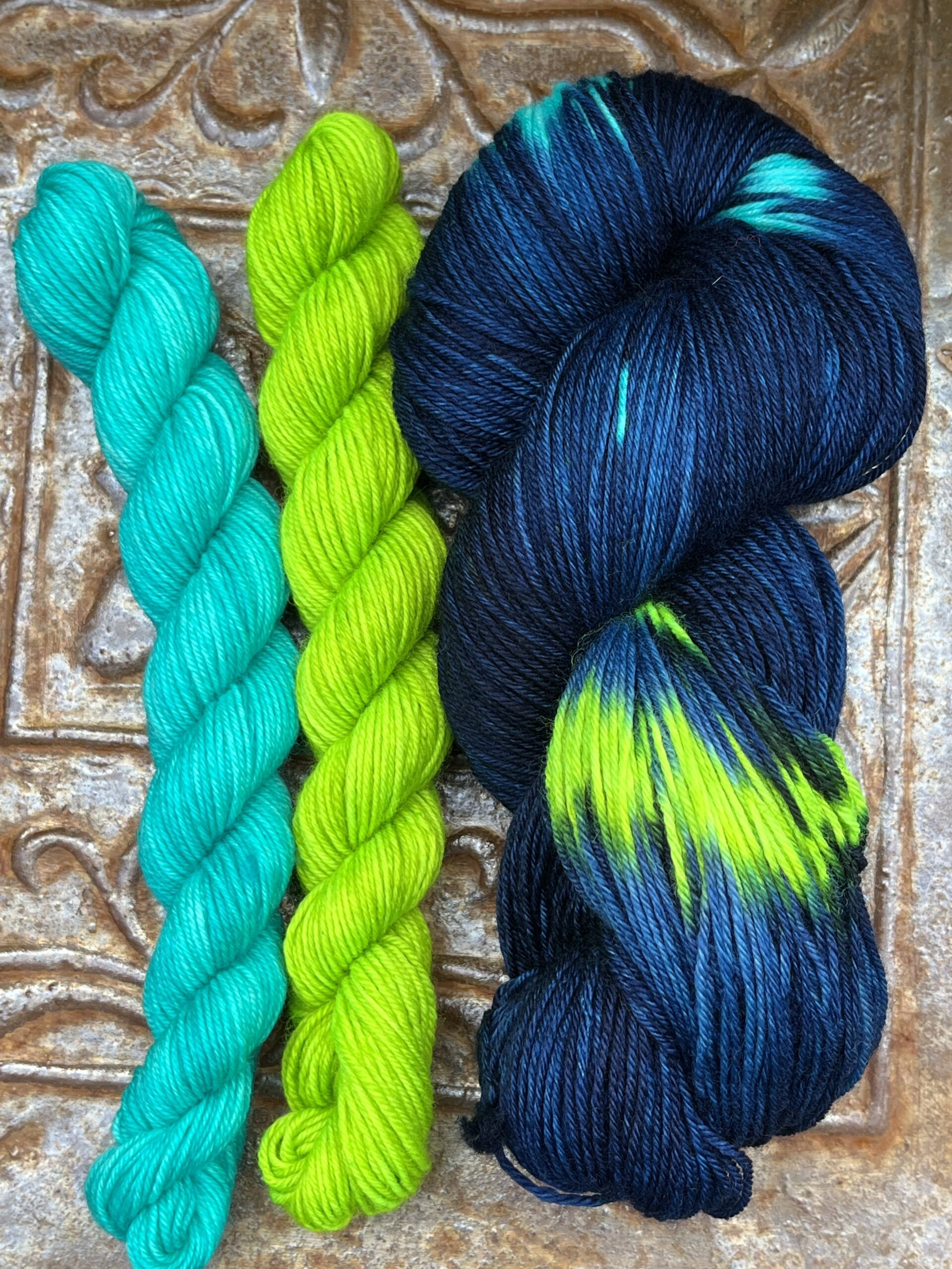 Sock Sæt med et fed på 100g samt to små mini-fed på hver 20g/80 meter, i matchende farve.